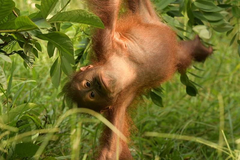 Cheeky Harapi hanging upside down at Baby Jungle School