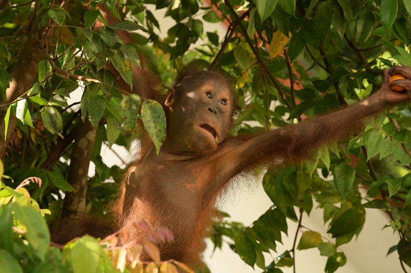 At his last weigh-in, Harapi tipped the scales at 5.5 kg, having gained 0.25 kg in just one month! This might be thanks to the guava trees outside the veterinary clinic, which are full of fruit—and Harapi loves nothing more than climbing up and feasting on those juicy guavas!