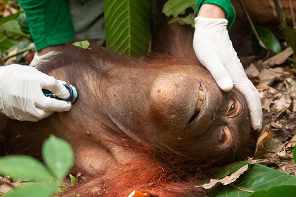 Deep in the rainforest, an orangutan is hurt. She may be burned. Her skin blistered from wildfires. She may be bleeding—wounded by a machete after a clash with humans. She may be starving. Her forest reduced to ash and stumps by bulldozers. She’s alone. In pain. Without help, she won’t survive.