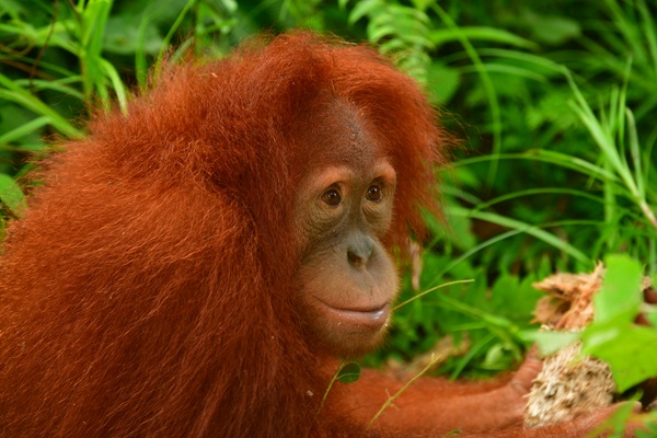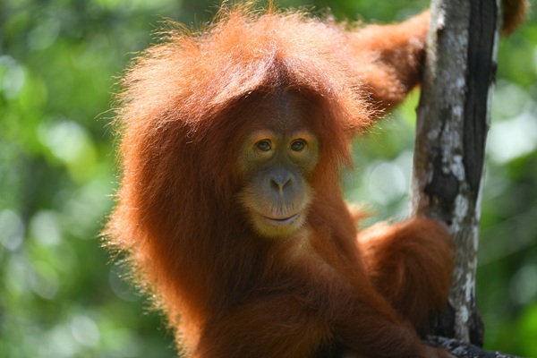 At eight years old, Asto has grown into a calm and gentle orangutan who loves spending her days high in the trees. As soon as she arrives at Jungle School each morning, she wastes no time climbing up the nearest trunk and moving gracefully from branch to branch in search of food. Rarely seen on the ground, Asto builds strong nests, forages confidently for forest fruits, and continues to show impressive independence. Once fond of human company, she now prefers to explore quietly on her own- a wonderful sign that she’s preparing for a wild future.